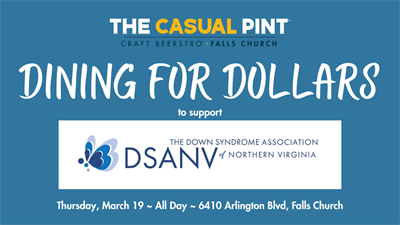 The Casual Pint will be donating a portion of proceeds from all food & drink sales (dine-in and carry-out) to the Down Syndrome Association of Northern Virginia all day (noon-11pm) on Thursday, March 19. Come for lunch or dinner and support a great cause!