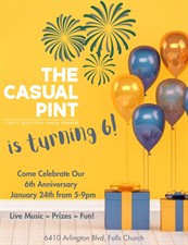 The Casual Pint is turning 6! Come help us celebrate on Saturday, January 24 from 5-9pm with live music, prizes, and lots of fun. We couldn’t have made it this far without our Falls Church neighbors and all our great customers, so please drop by and raise a glass with us!